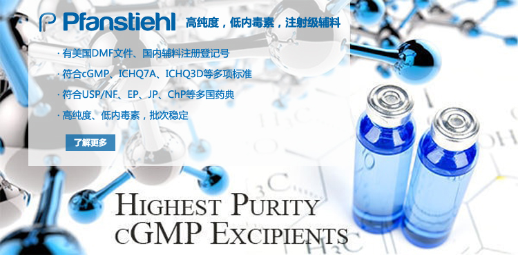 “熱烈祝賀Pfanstiehl的注射級甘氨酸Glycine(G-140)喜獲CDE登記號F20250000403, 這是Pfanstiehl產品獲得的第18個CDE登記號!”甘氨酸在醫藥輔料制劑中應用廣泛,, 可作為緩沖劑,增溶劑,穩定劑等,具有諸多優勢。Pfanstiehl秉承一貫高品質理念,為滿足全球生物制藥行業對于高品質甘氨酸的需求,隆重推出的注射級甘氨酸Glycine (G-140), 具有超高純度,超低內毒素,超低金屬殘留的特點,單獨檢測29種金屬離子,并且新增DNA,RNA,DNA酶,RNA酶和脂肪酶,亞硝酸鹽等多項質量指標的檢測,符合多國藥典規定(USP, EP, BP, JPE, ChP),可用于生物治療性藥物和疫苗的生產。產品信息:· 產品名稱:Glycine, High Purity, Low Endotoxin, Low Metals, USP, EP, BP, JPE, ChP (G-140)· 中文名稱:甘氨酸· 分子式:C2H5NO2· 分子量:75.07 g / mol· CAS號:56-40-6· 產品貨號:G-140產品特點: · 超高純度,超低內毒素,超低微生物含量,超低金屬雜質殘留· 質量指標新增DNA,RNA,DNA酶,RNA酶,脂肪酶和亞硝酸鹽檢測· 符合多國藥典:USP, EP, BP, JPE, ChP· 符合ICH Q3D標準· 符合GMP標準· 已獲DMF和CDE登記號 產品應用:· 緩沖劑· 穩定劑· 增溶劑如果您對Pfanstiehl注射級別Glycine G-140感興趣,歡迎聯系Pfanstiehl 中國區代理商北京西美杰科技有限公司獲得如下詳細的產品概況說明文件和測試樣品。Pfanstiehl Inc.最新產品系列如下,歡迎聯系北京西美杰科技有限公司獲取100g裝免費樣品。北京西美杰科技有限公司為Pfanstiehl中國代理,為客戶提供完善的技術支持與售后服務。歡迎撥打西美杰客服電話400-050-4006或者登陸網站www_xmjsci_com.ukongn.pro了解更多信息。 更多>西美杰介紹